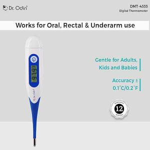 Dr. Odin digital oral thermometer controlling the error within ±0.2?. A beep sound in 20 second. The flexible tip is secure for oral use, rectal use and armpit use, provides more comfort and convenience