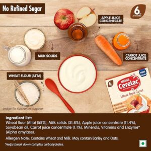 Baby Food Cereal | No Refined Sugar | Wheat Apple Carrot for 6 to 24 Months Baby | Omega 3 Iron Protein Calcium Vitamin D for Babies | Instant Cereal